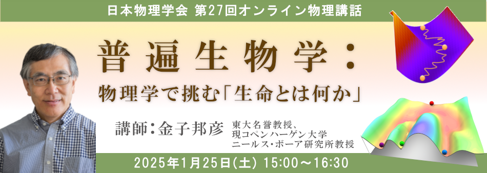 オンライン物理講話は、物理学を愛好される方々に向けて、第一線で活躍する物理学者が「最先端のホットな話題について語る」企画です。TVやオンライン動画などにある多くの一般向けの紹介より、もう少し深い理解を得ることを目指しています。皆様に長年ご愛顧いただいていた「科学セミナー」の後継事業でもあります。物理学会会員・会友の方々にとっては、年次大会総合講演以外の貴重な機会となることでしょう。