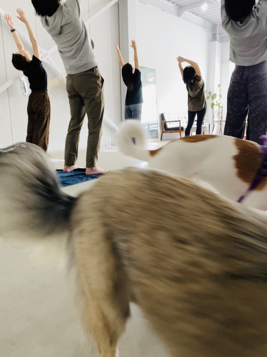 * 他の人や犬との交流が問題ないわんちゃんのみ同伴可* ヨガマットご利用の場合は、予約の際に“ヨガマットレンタル”を選択し、当日500円を現金にてお支払いください