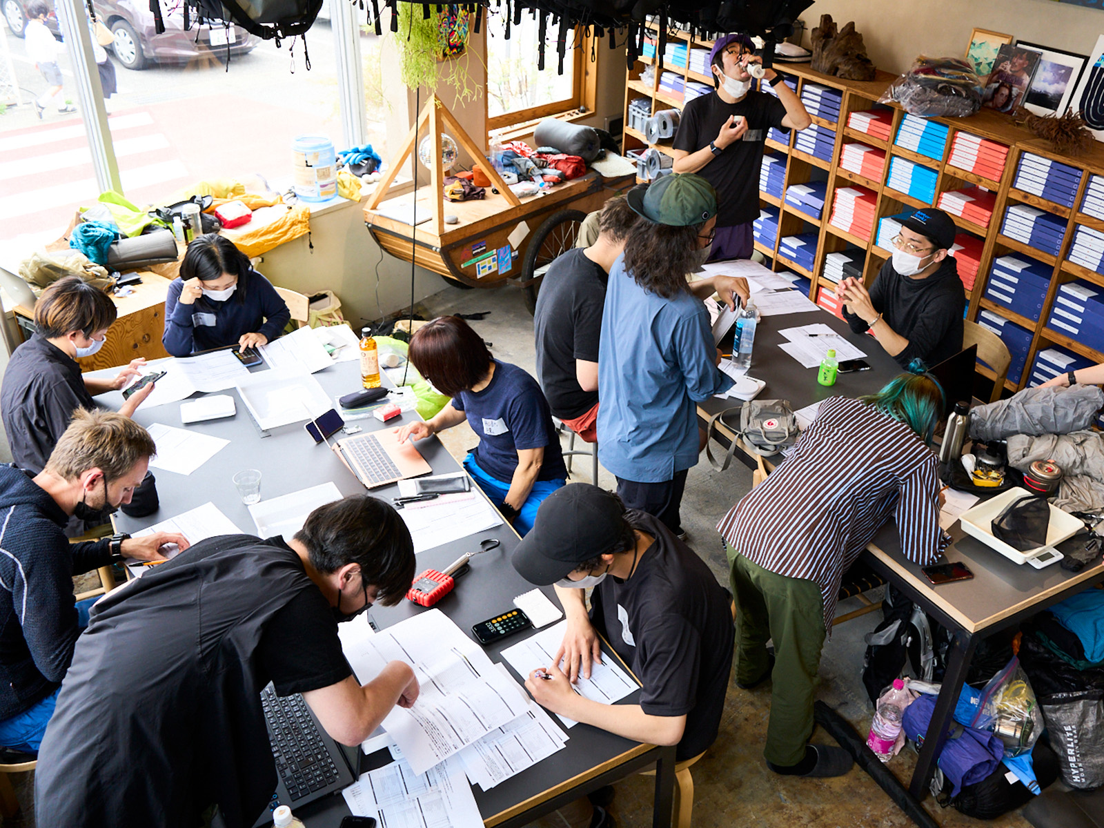 山と道スタッフを講師に座学形式で学び、各自が持参した道具のギアリストを作成しながら道具の取捨選択の方法を知り、UL装備化の手順やポイントを理解します。