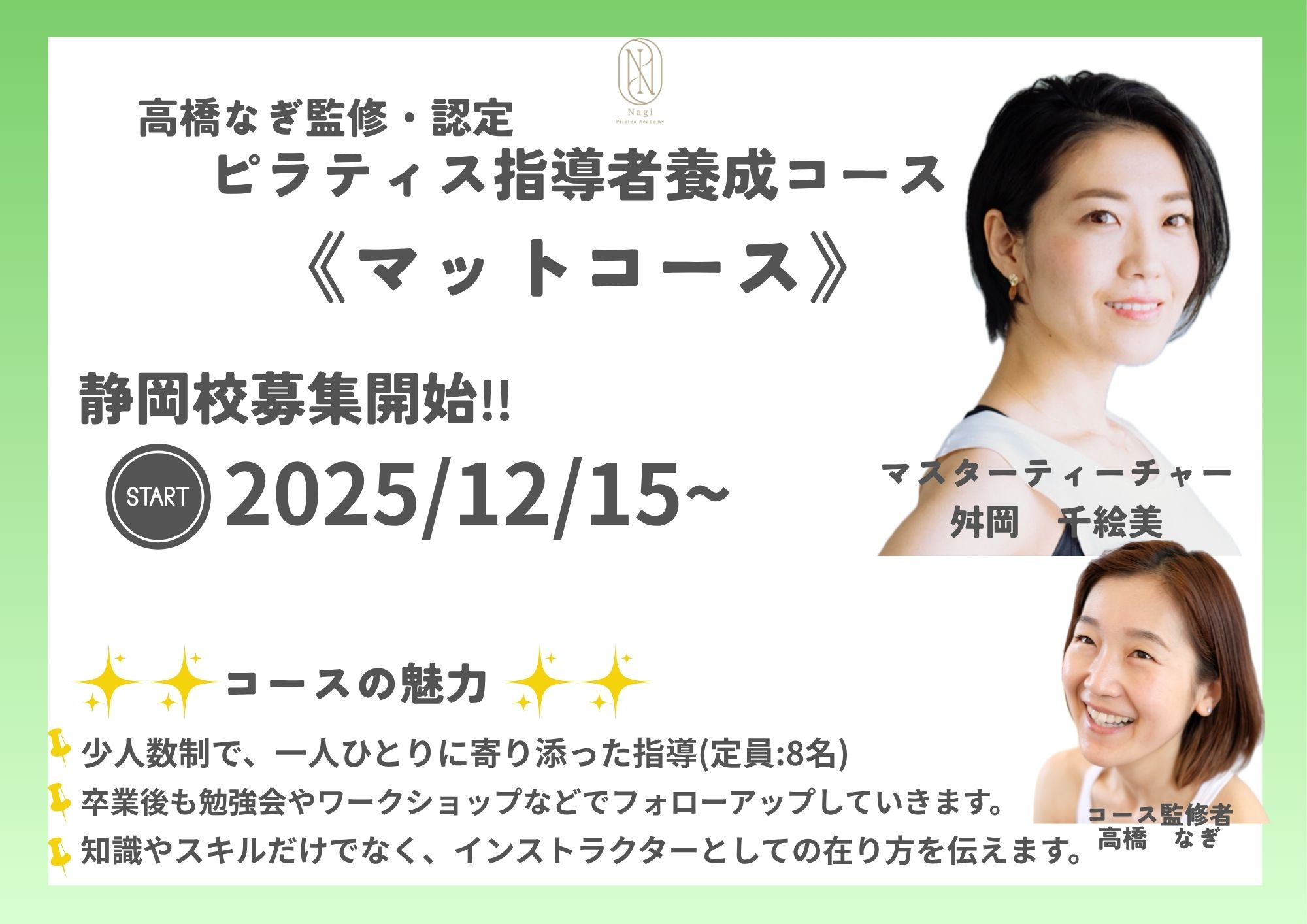 国際的ピラティス指導者・高橋なぎが監修のカリキュラム質の高いピラティスを学ぶ