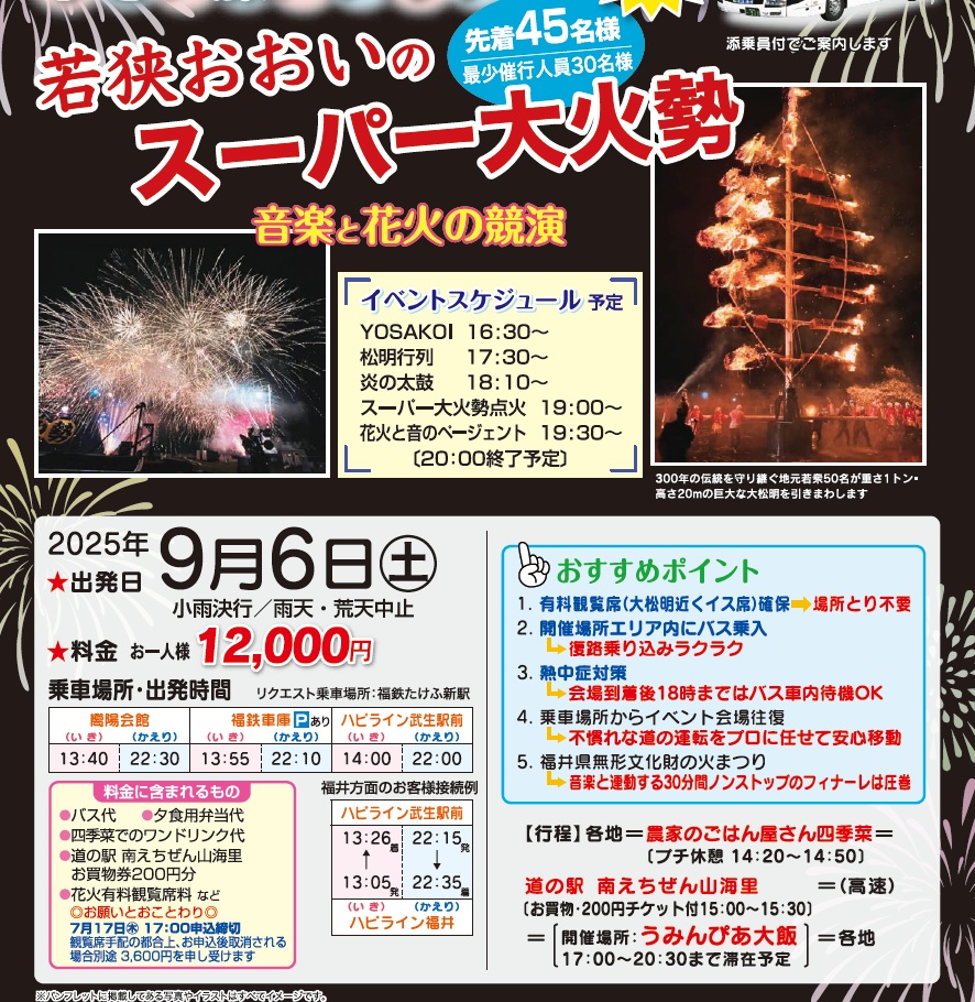 ◆スーパー大火勢会場◆うみんぴあ大飯【17:00~20:30まで滞在予定】勇壮な火祭りをとくとご覧ください