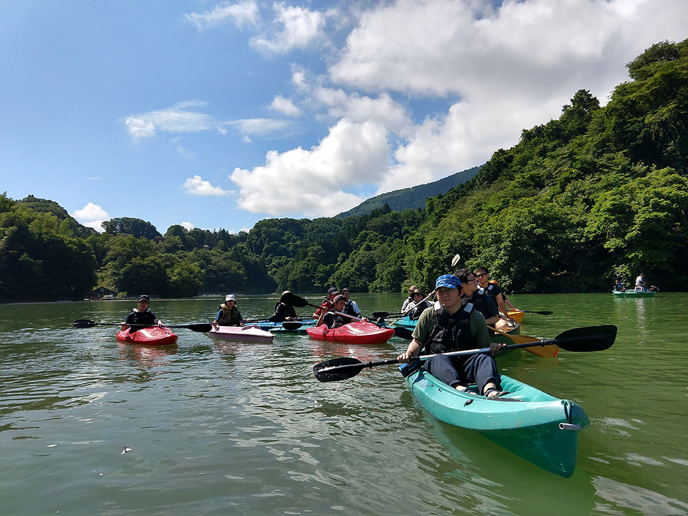 パドリングの技術も上がり湖のルールやマナーを学んだら少し遠出に挑戦するプログラムもございます。