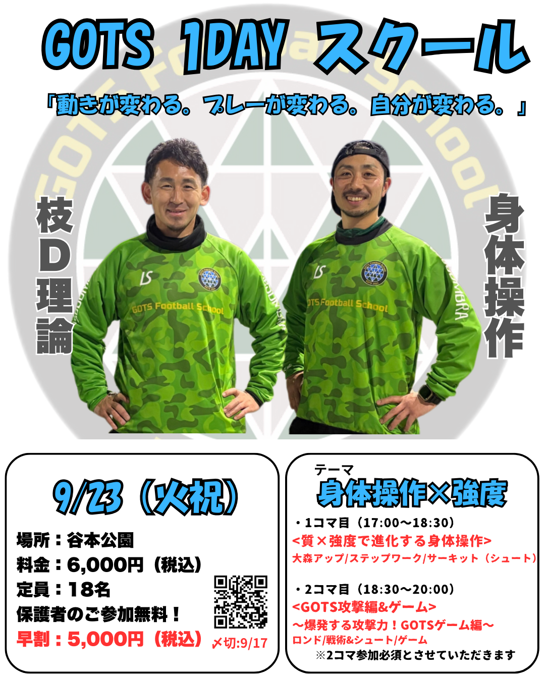 9月23日(㊗️火)に、谷本公園会場にて 「GOTS1DAYスクール」を開催します!