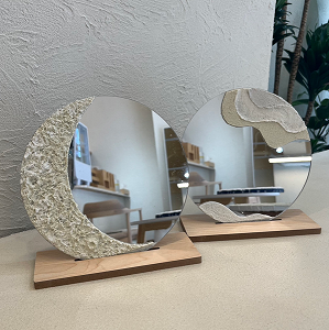 ラウンドミラーにテクスチャーのペーストを使ってデザインして頂けます。