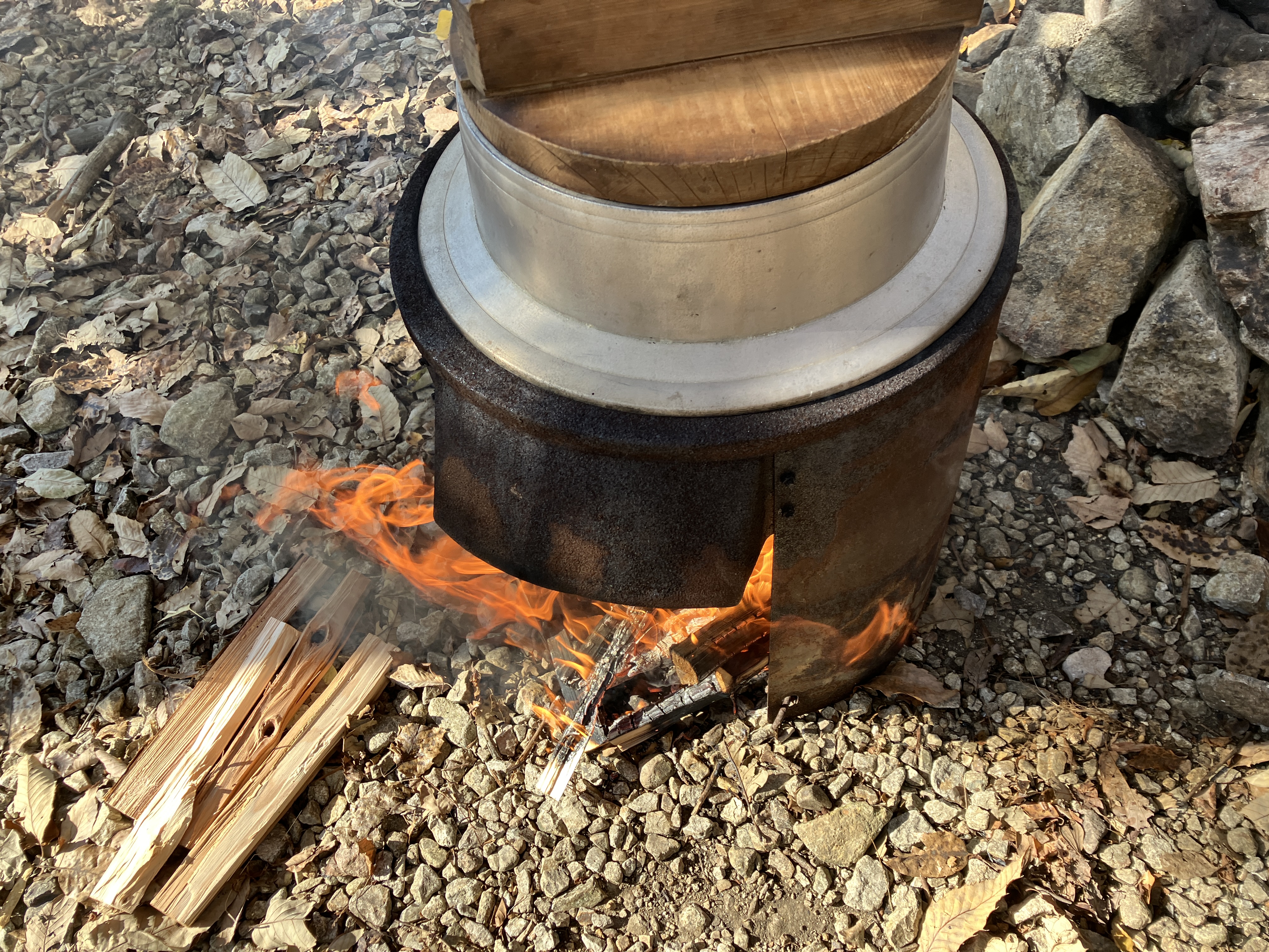 大きなかまどで、秋らしい炊き込みご飯を作ってみます。