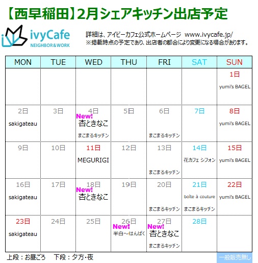 営業日時:2月2日(月),16日(月),23日(月)