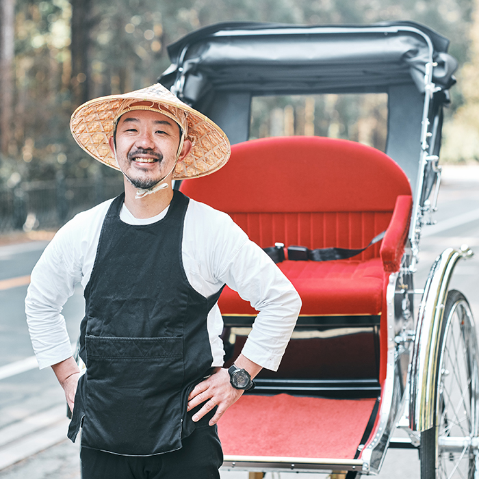 ロンドンでの海外生活、インド放浪旅を経て、2012年に地元の高野山で初のゲストハウス『Kokuu』を開業。そのユニークな建築で海外建築雑誌やメディアに数々登場し、国内外からのバックパッカーを受け入れる高野山での中心的な存在となる。しかし、2020年にコロナ禍で宿泊業が大打撃。以前より温めていたプラン、高野山で人力車を復活させる事を決意し、2021年4月に『高野山巡礼人力車こくう』を始動。