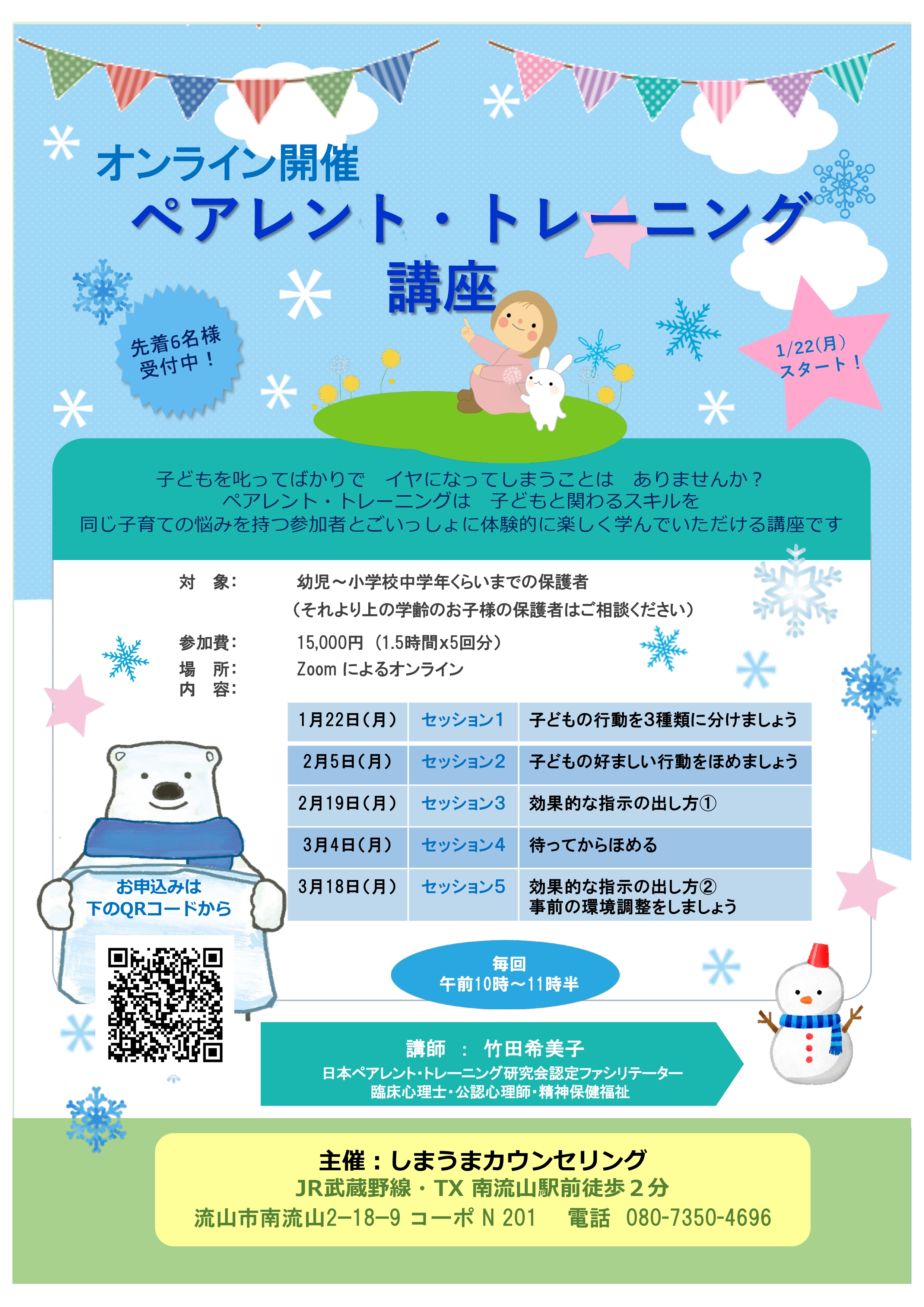 参加費:15,000 円(1.5時間 × 5回分)