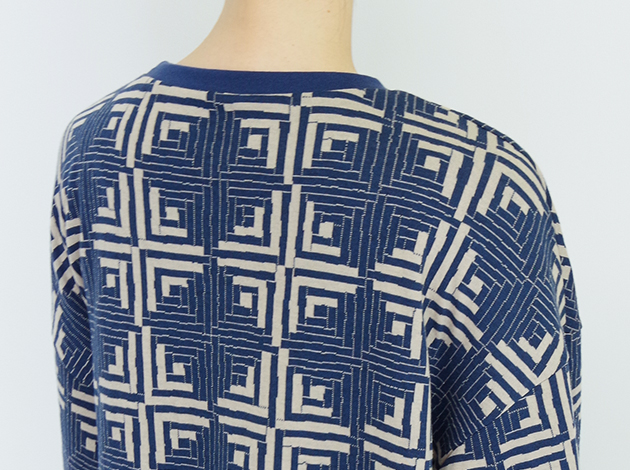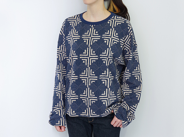 マフォン リバーシブルジャガードニット / ログキャビン柄 杢ダルブルー使用機材