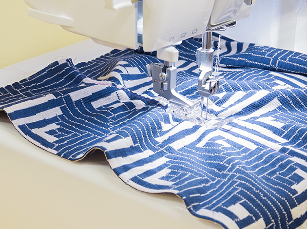 生地はカット済みのキットをご用意しています。ロックミシンやカバーステッチミシンを使ったことがない方も、本格的な仕上がりをご体験いただけます。