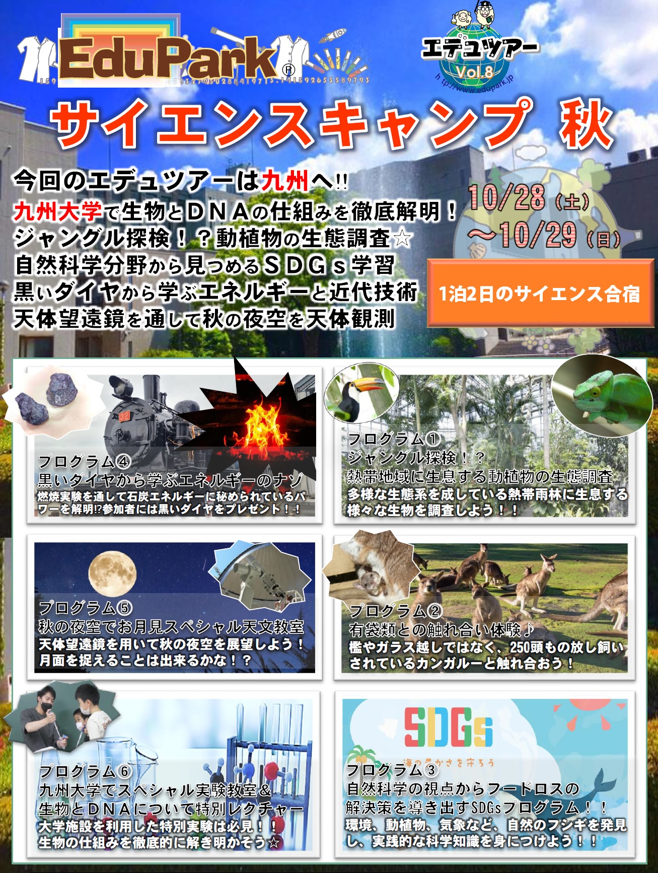 エデュパークだからこそ行ける!大学教授の専門知識をお借りし、深い学びの楽しさを感じるアカデミックな宿泊型サイエンスキャンプ!!