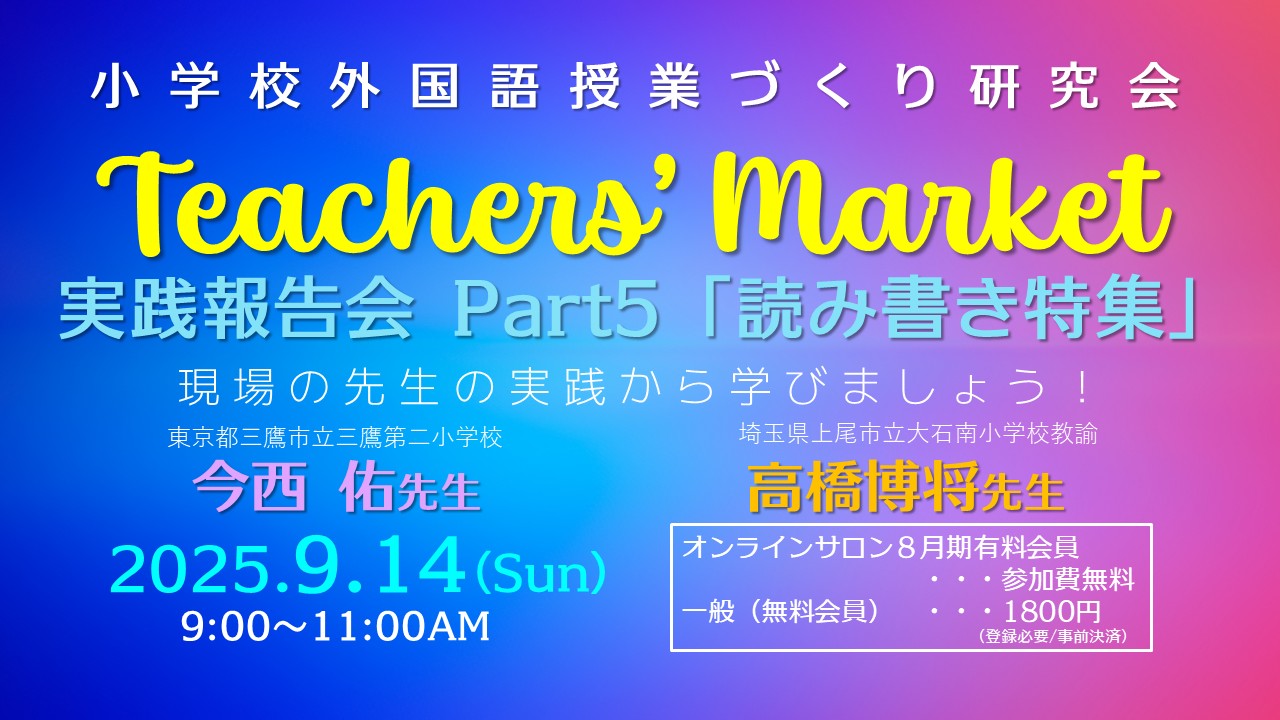 ・本研究会の9月期有料会員(オンラインサロン)の方は、無料でご参加できます。有料会員のプランは、Aプラン(継続会員月額¥980)とBプラン(当月のみ会員¥1480)があります。本講座を有料会員ステータスでお申し込みの方は、こちらの申込とは別に本研究会の有料会員登録・決済の手続きが必要となります。小学校外国語授業づくり研究会オンラインサロン https://gaikokugolesson.net/ のトップページから、マイページにログインし、プラン選択へとお進みください。