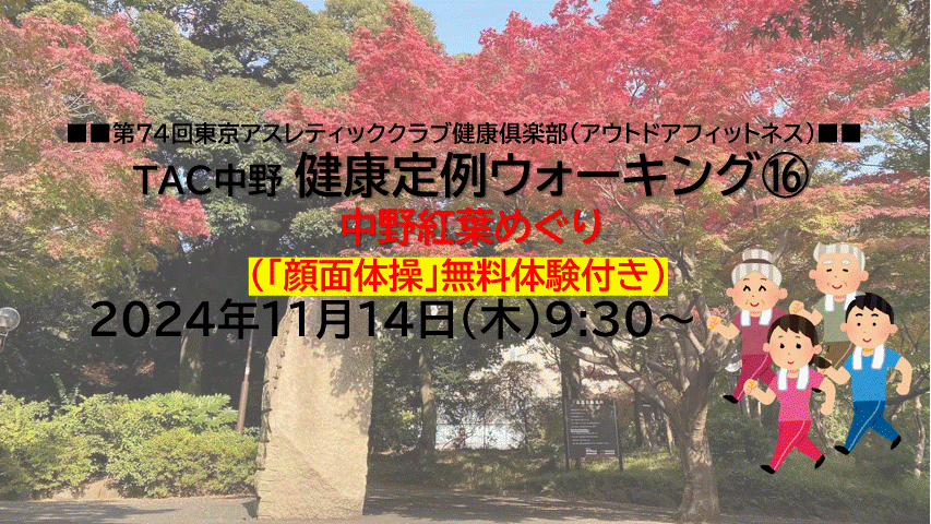 『TAC中野を拠点に中野を楽しくウォーキング 中野紅葉めぐり(顔面体操付き)』