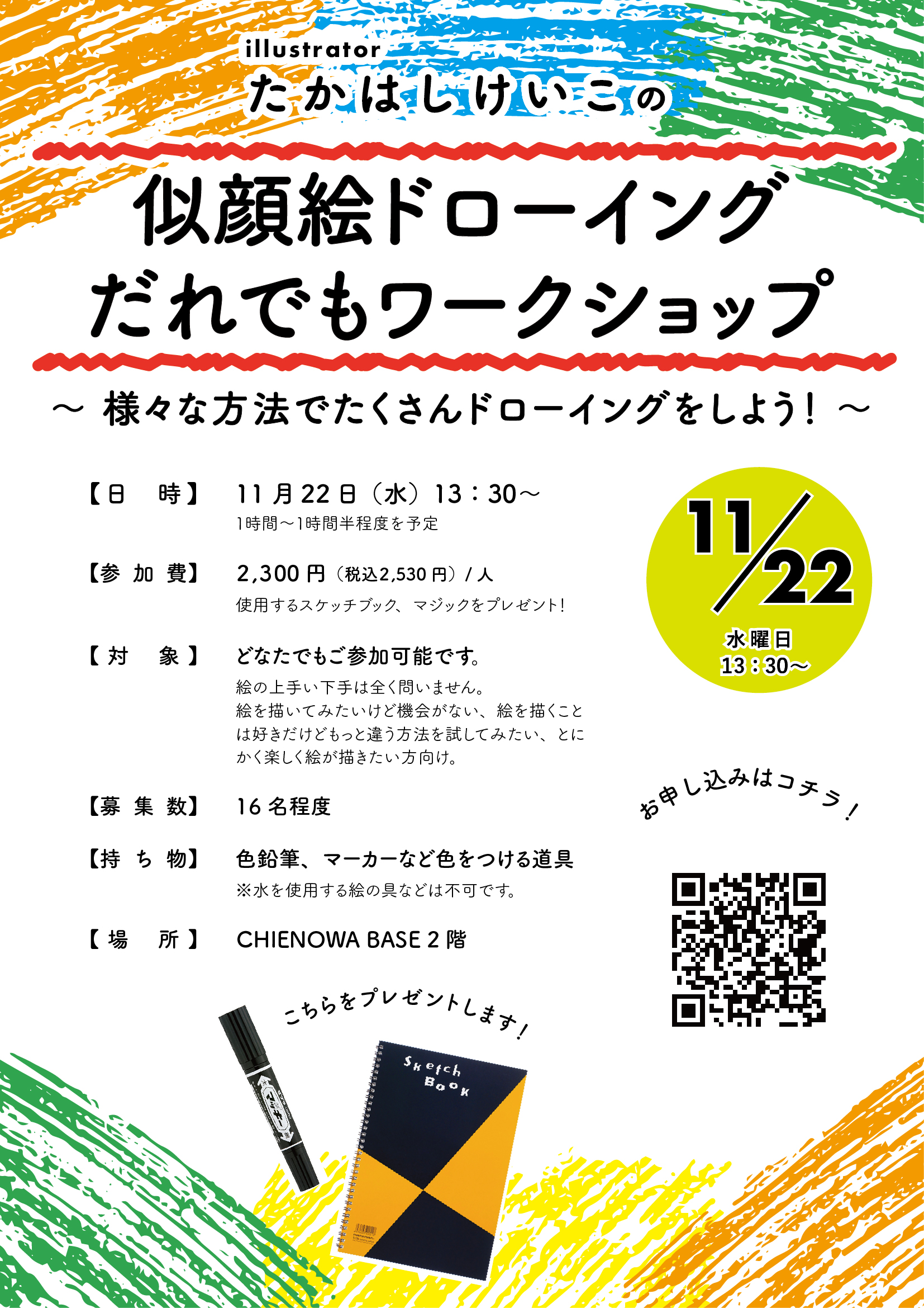 絵の上手い下手は全く問いません。絵を描いてみたいけど機会がない、絵を描くことは好きだけどもっと違う方法を試してみたい、とにかく楽しく絵が描きたい方向け。