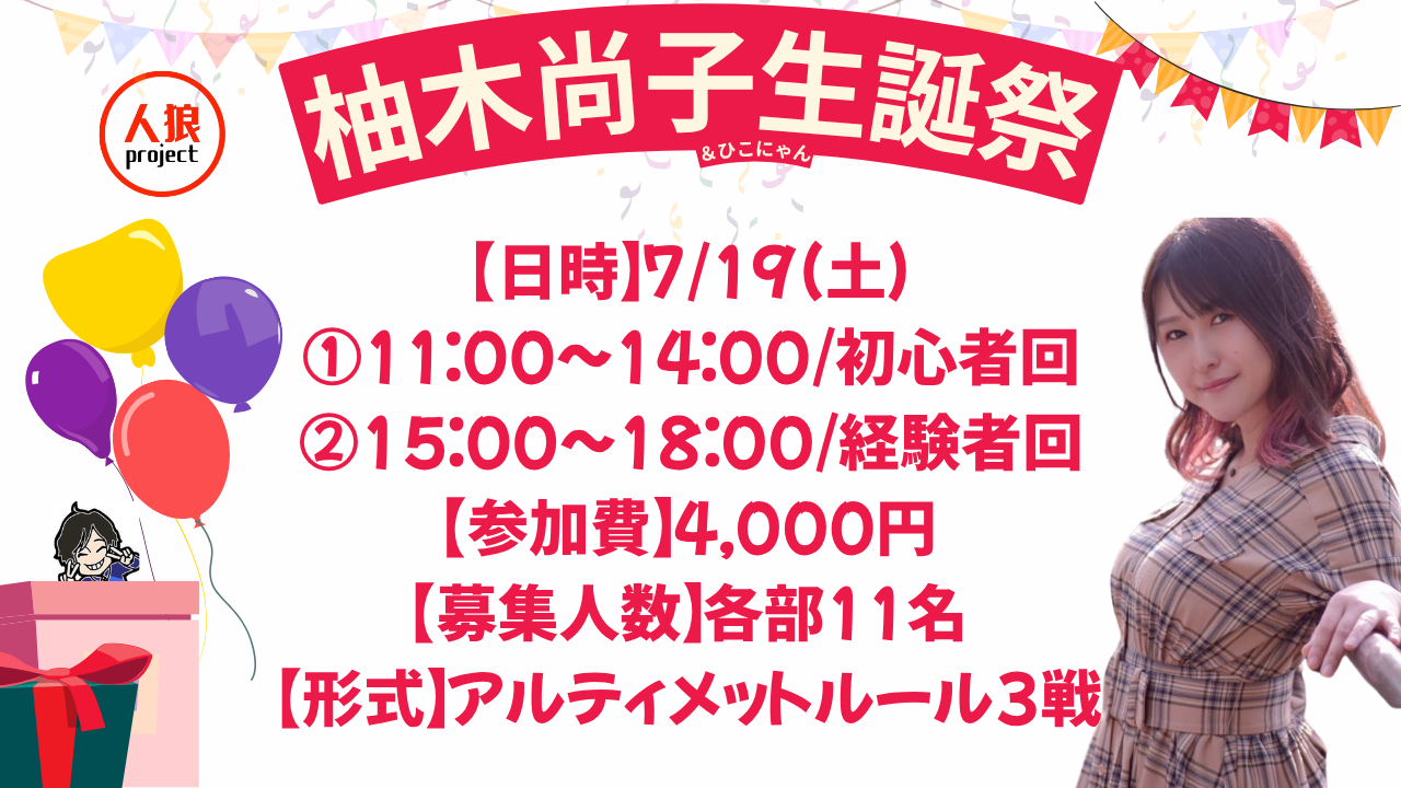 【対面人狼】7/19(土)柚木尚子&ひこにゃん生誕祭