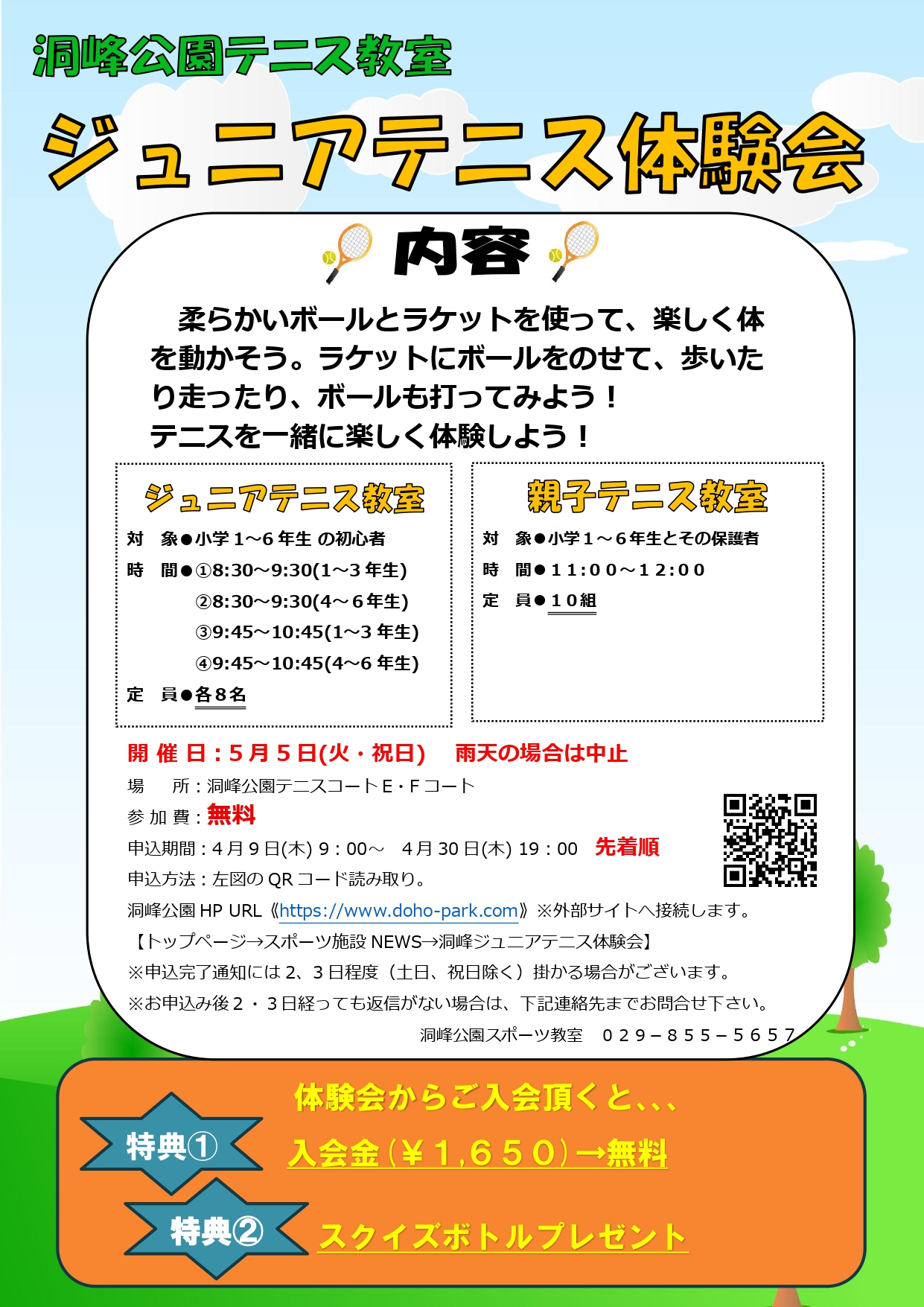 【トップページ→スポーツ施設NEWS→洞峰ジュニアテニス体験会】
