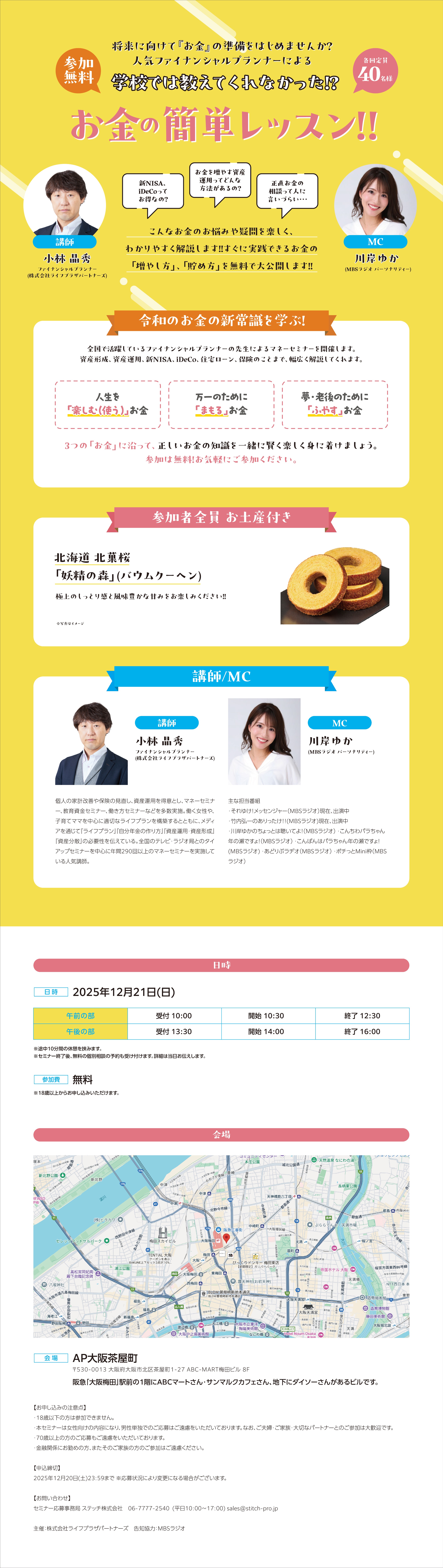 MBSラジオでCM放送中♪♪ 学校では教えてくれなかった!? お金の簡単レッスン!!』会場:AP大阪茶屋町(阪急『大阪梅田駅』すぐ目の前)