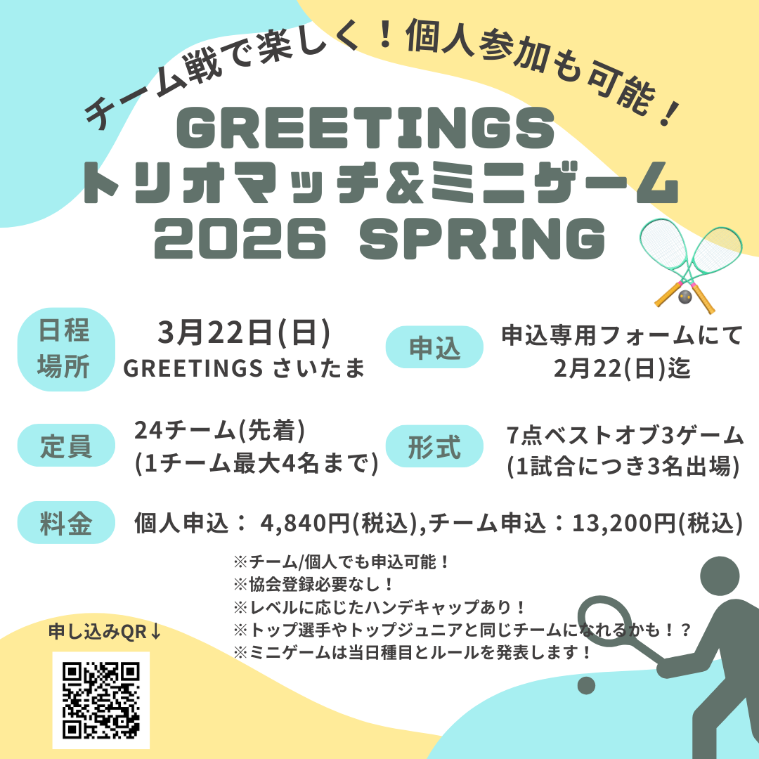 ・1試合につき3名ずつ出場します。・番手(チーム内での強さの順番)は申込時の競技レベルを基に主催者側で決めます。