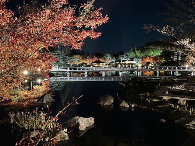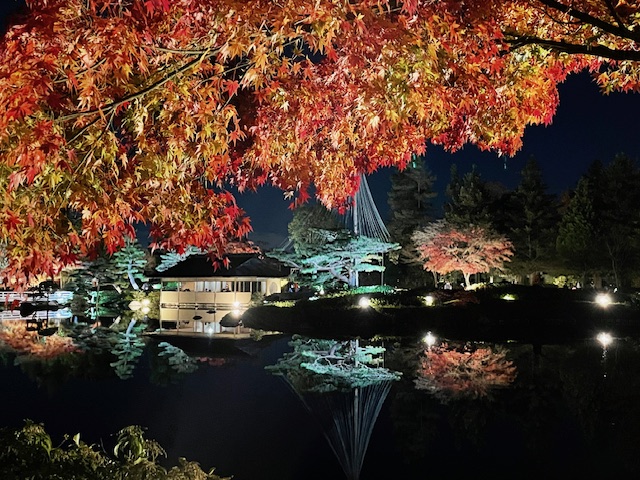 秋の夜散歩をウォーキングにて約2時間で周ります。今回のメインは日本庭園ライトアップ観賞です!