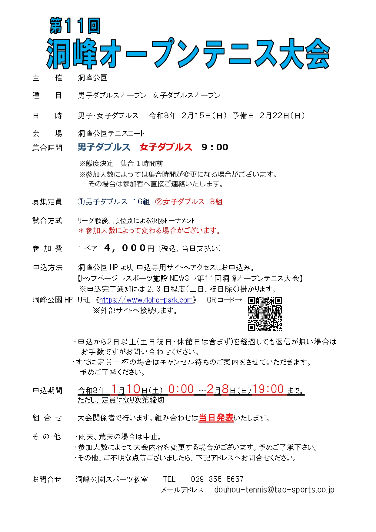 【トップページ→スポーツ施設NEWS→第11回洞峰オープンテニス大会】
