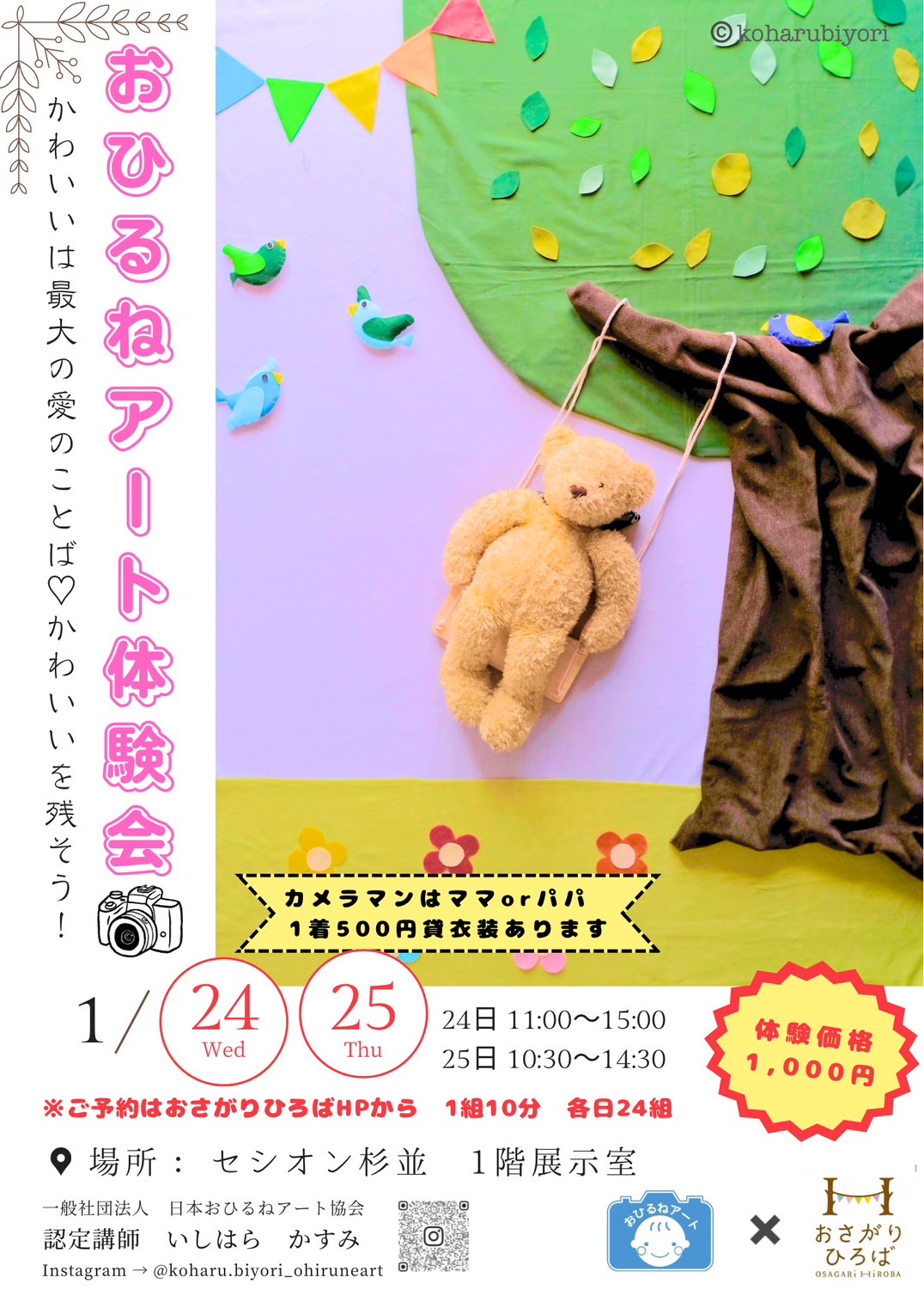 ※詳細時間はご予約後におひるねアート講師から連絡があります。すぐに確認が取れるメールアドレスをご利用ください。