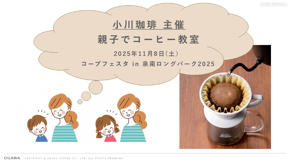 プロからコーヒーの淹れ方を教わって、本格的な一杯を親子でいれてみましょう!できあがったコーヒーは、生協で人気のパウンドケーキと一緒に味わいます。深いコーヒーの香りと、ケーキのやさしい甘さがぴったり合わさって、ちょっと特別なおやつタイムに♪