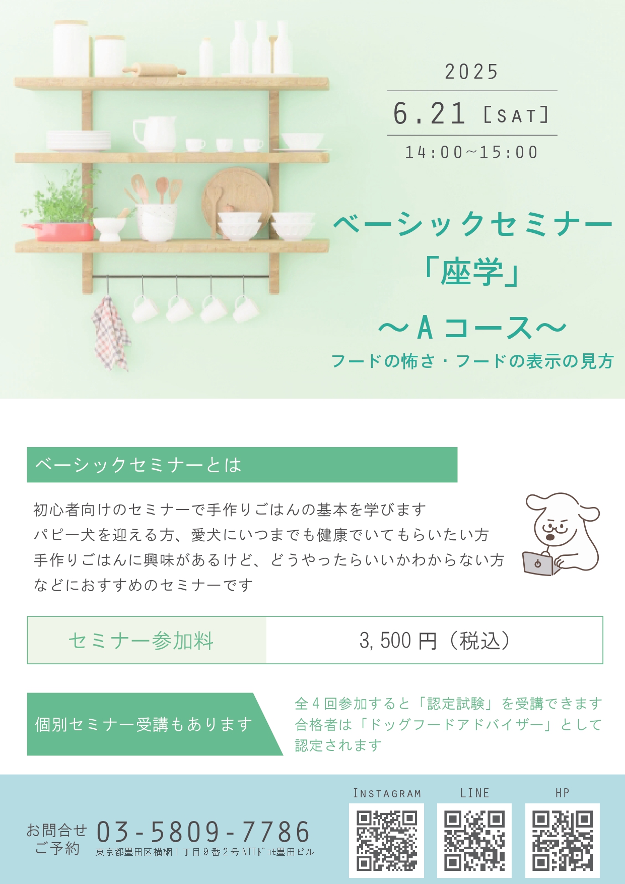 【AHBASE】愛犬 ホームメイドクッキングセミナー ベーシックコース 6月21日(土)