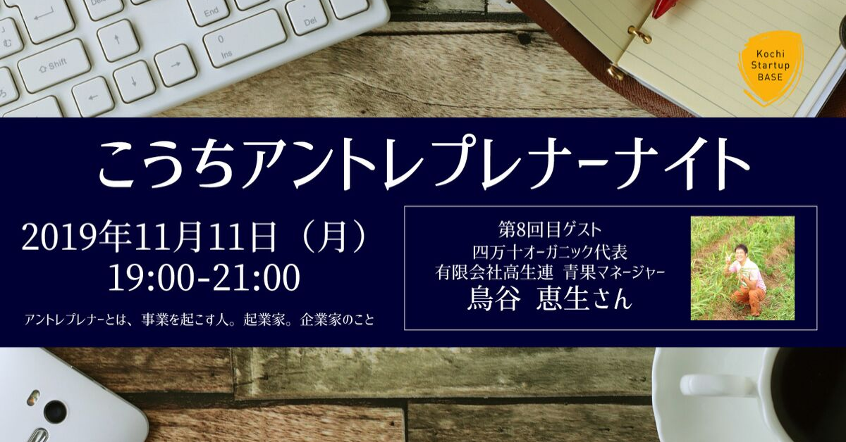 こうちアントレプレナーナイト、第8回目となるセミナーでは、四万十オーガニック代表・鳥谷恵生さんをゲスト講師にお迎えします。