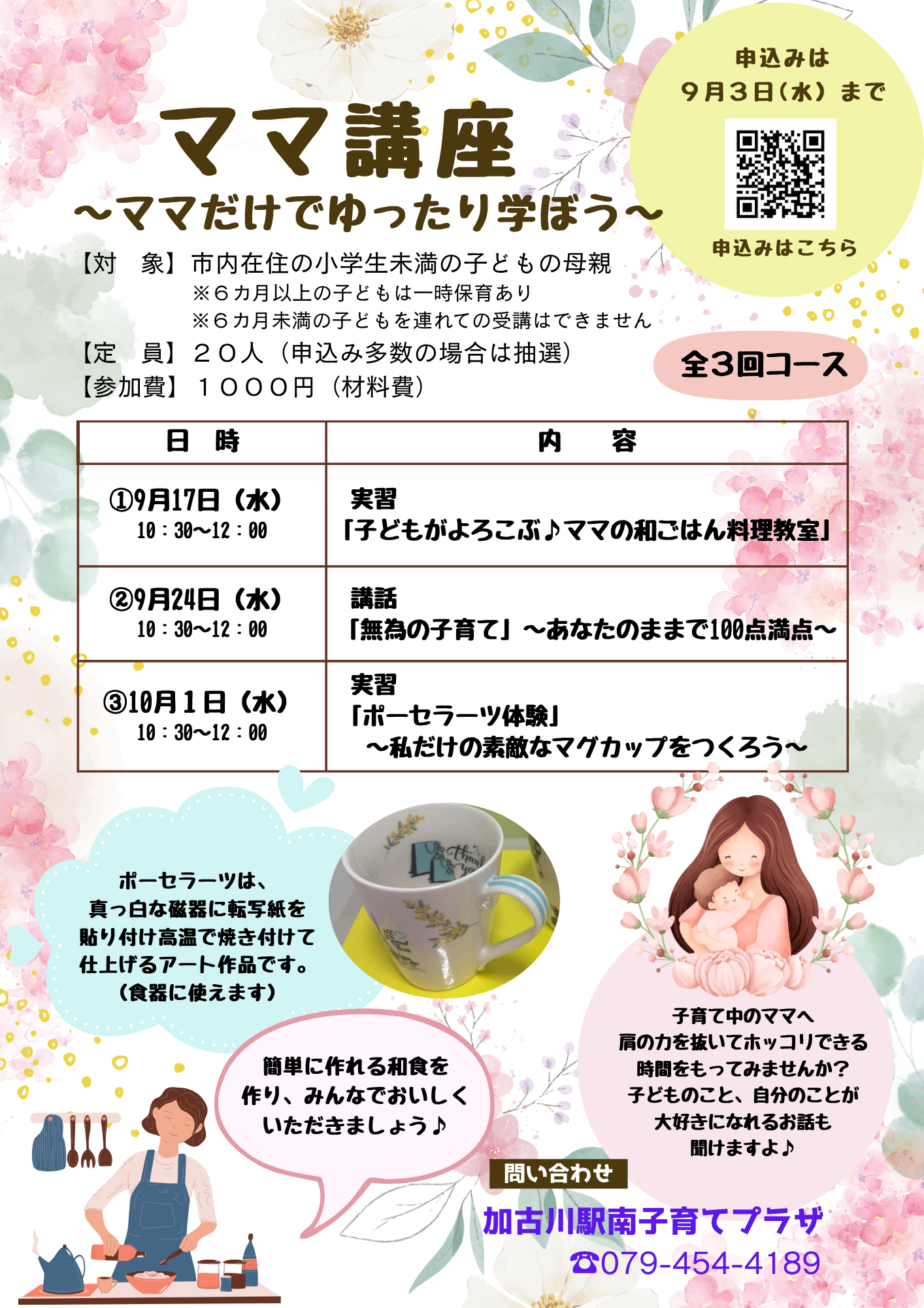 ご質問等は直接、加古川駅南子育てプラザ(079-454-4189)9~17時まで