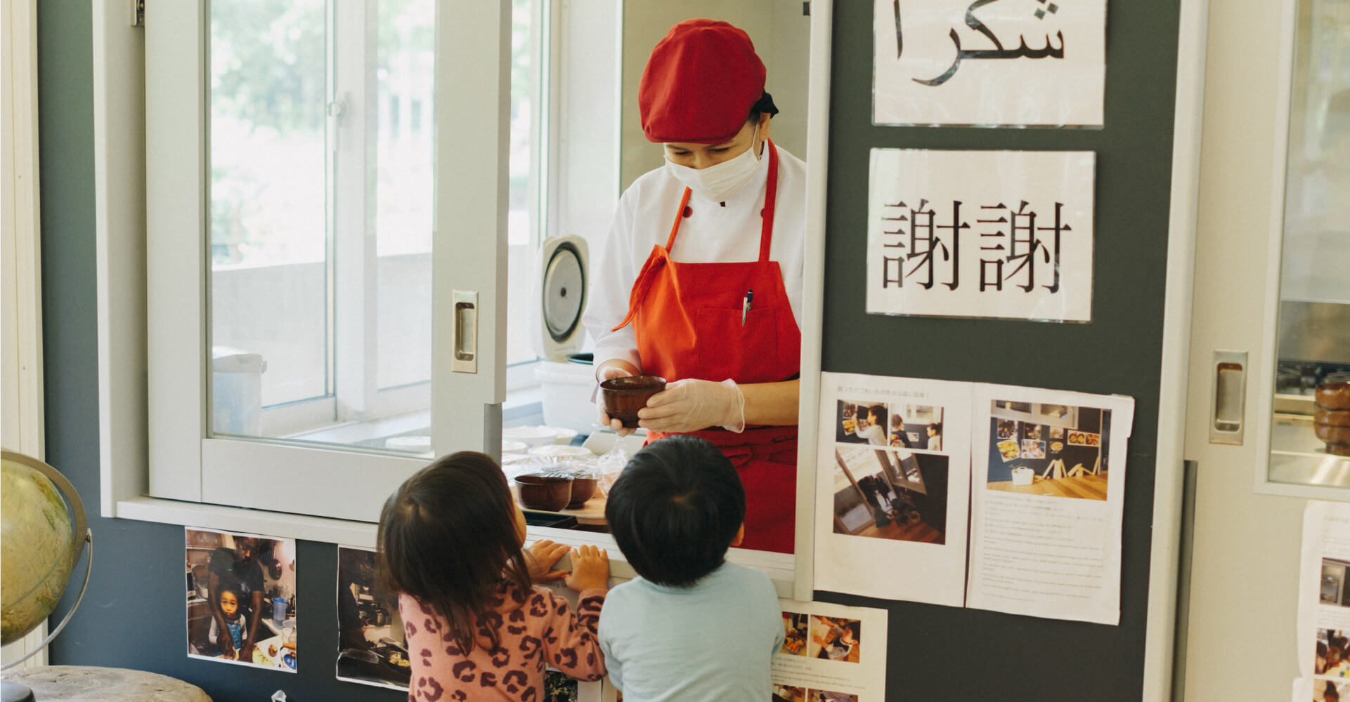 お昼時は美味しそうなにおいがしてきて、今日のお昼はなんだろうとこどもたちは給食室をのぞきにいきます。