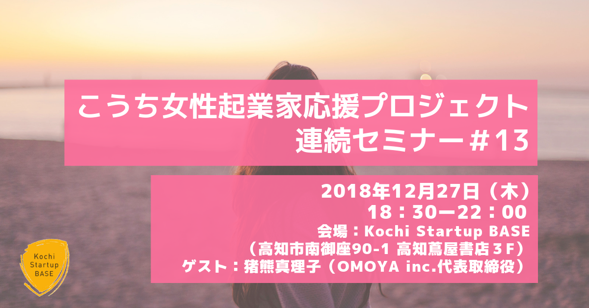 こうち女性起業家応援プロジェクト、第13回目となる本セミナーでは、OMOYA Inc. 代表取締役社長で、女子未来大学ファウンダーでもある、猪熊 真理子さんをゲストにお迎えします。