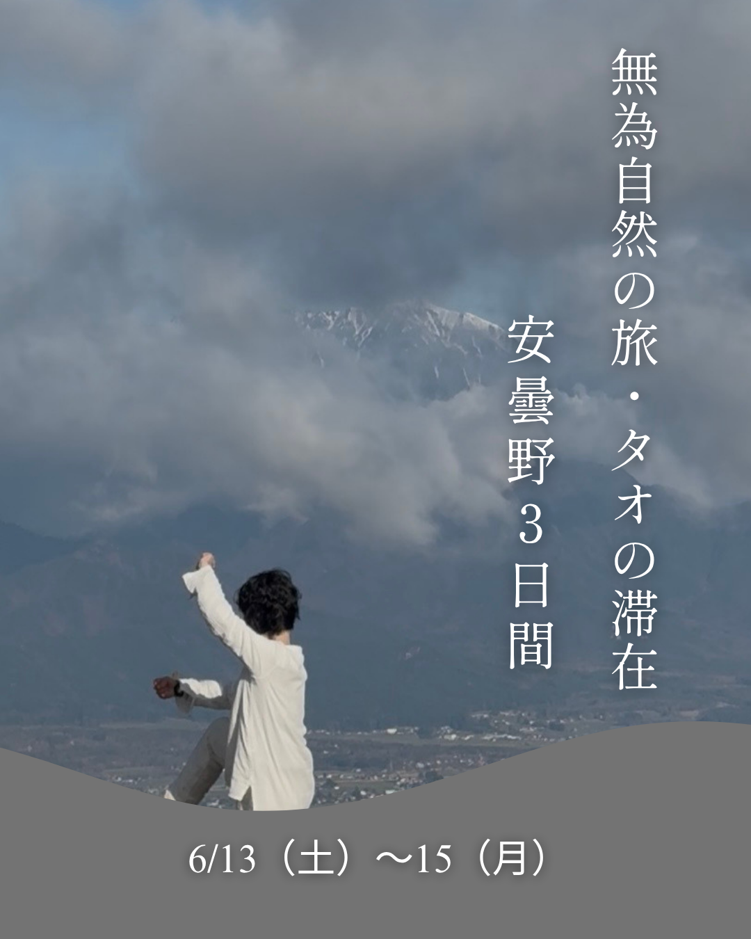 徒歩10分のアルプス絶景のクラフトパークにて北アルプスに向かって太極拳(タオプラクティス)