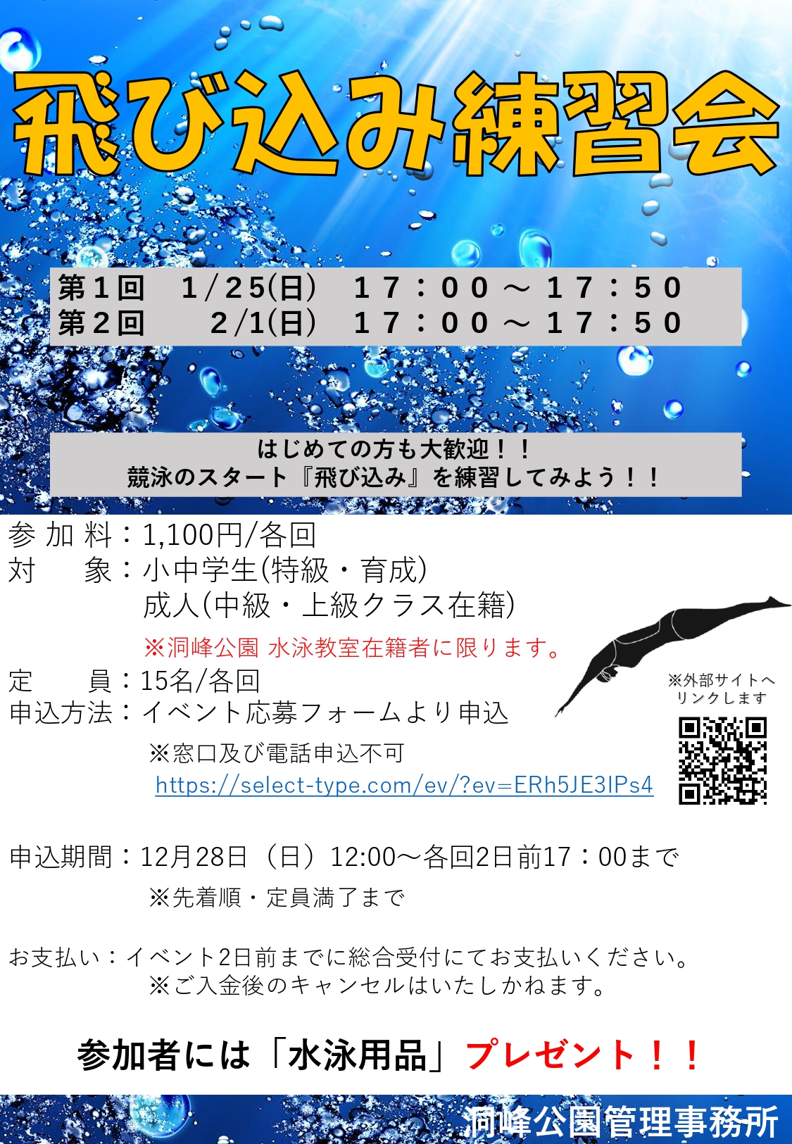 ※洞峰公園水泳教室在籍者に限ります。