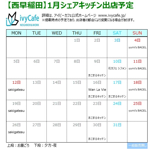 営業時間:1月12日(月)、19日(月)、26日(月)