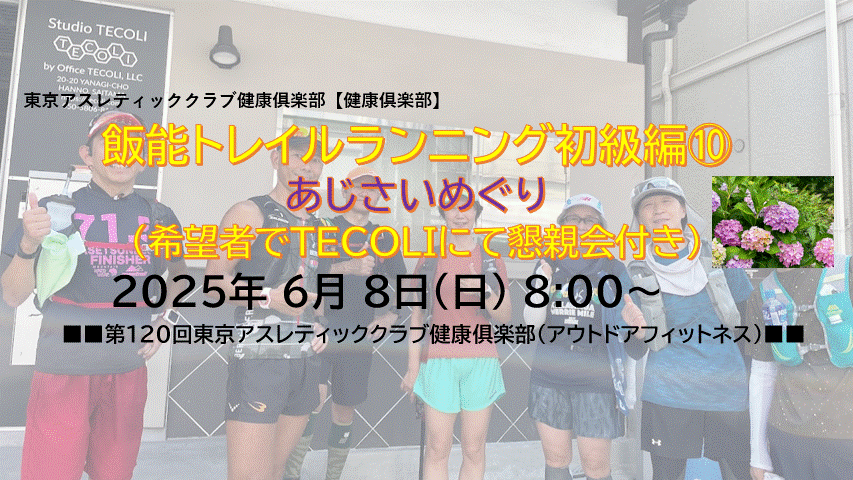 『飯能の里山で楽しくトレイルランニング!(あじさいめぐり)終了後は希望者でTECOLIにて懇親会』