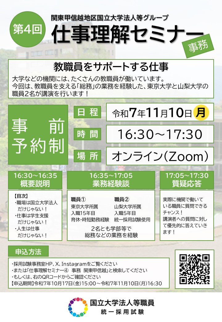 国立大学法人等職員の概要や採用フローについては表示の動画で詳しく説明しておりますので、