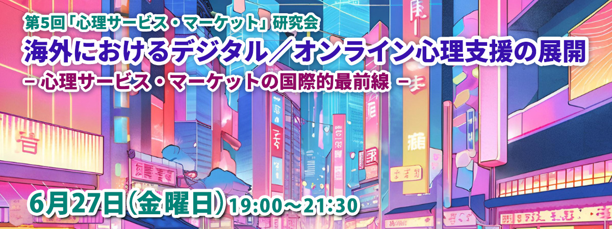 そこで第4回研究では、「日本のオンライン心理サービスの最前線」を検討します。そして、それを受けて第5回では「海外におけるデジタル・オンラインの心理支援の展開」です。副題として「心理サービス・マーケットの国際的最前線」となっています。