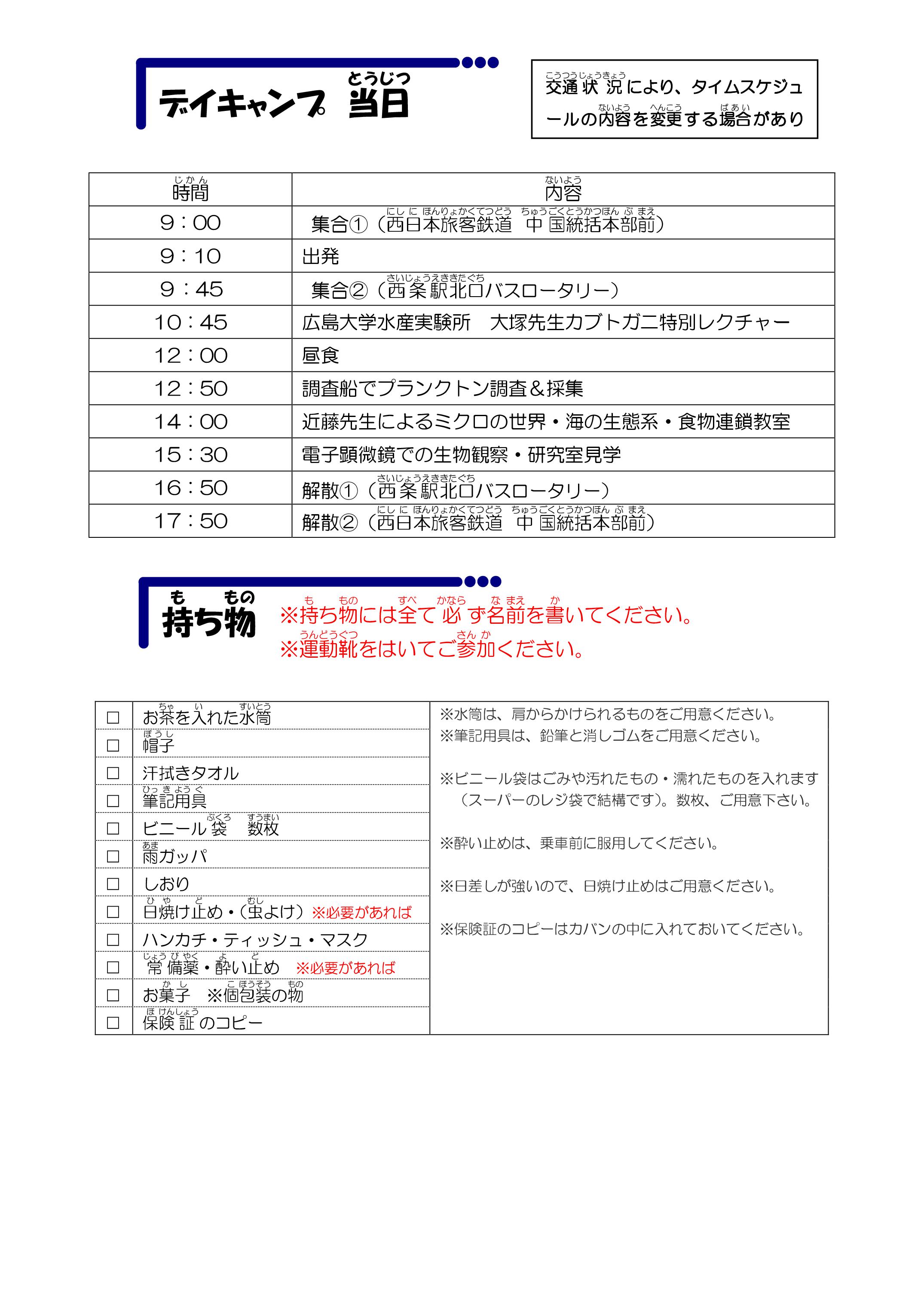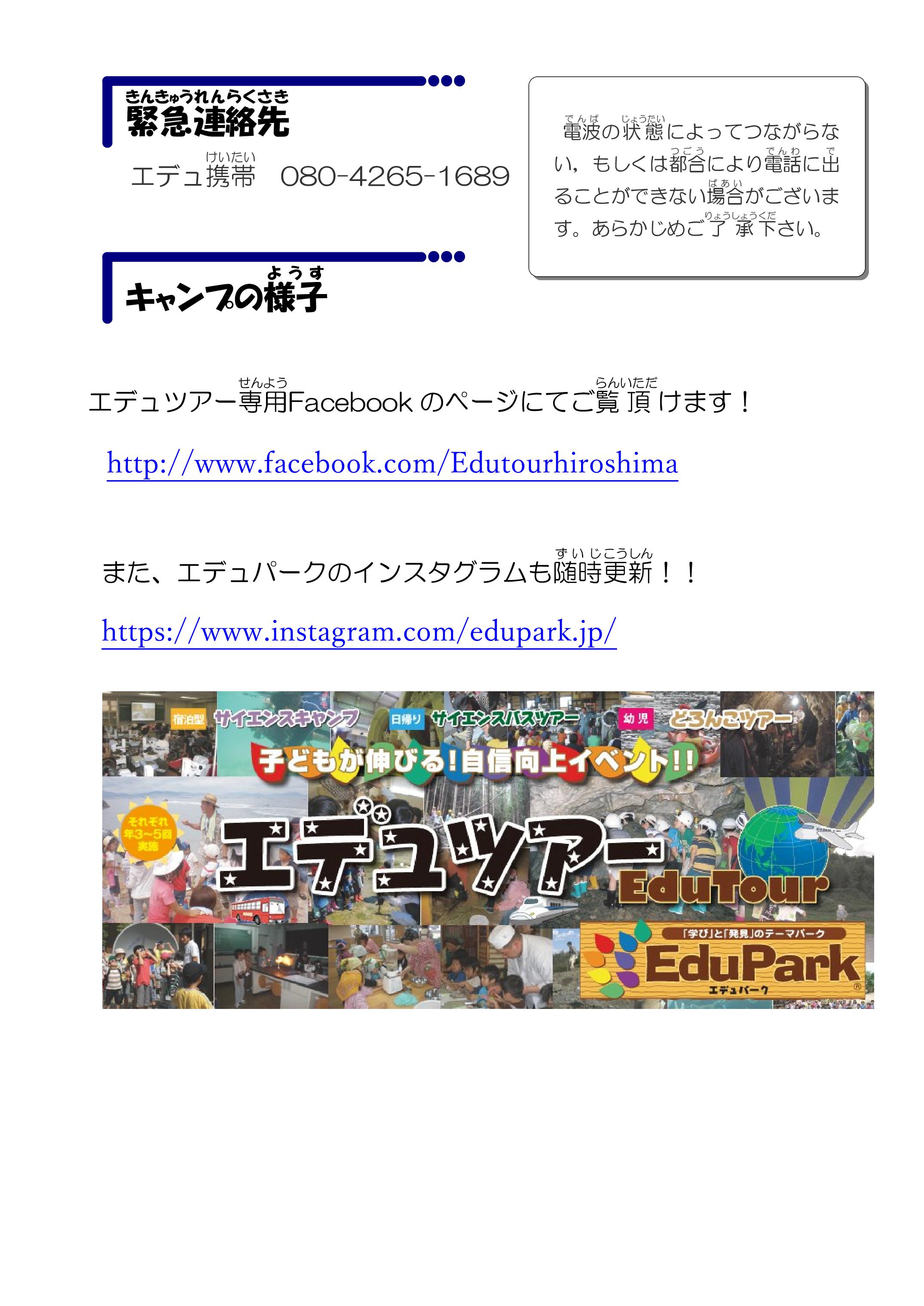 ※サイエンスキャンプのしおりは簡易版を7~10日前を目安にメールでお送りし、ツアー当日に生徒用の完全版をお渡しします。
