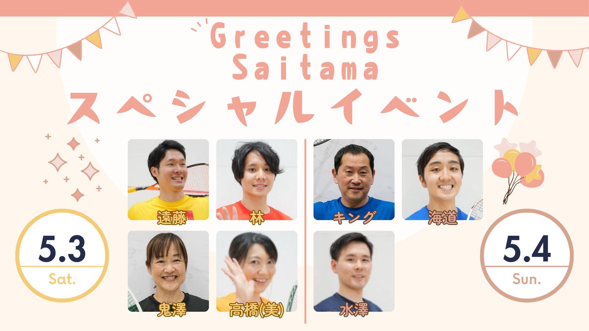 5月3日(土祝)・5月4日(日祝)はGreetingsのコーチがさいたまに集合!