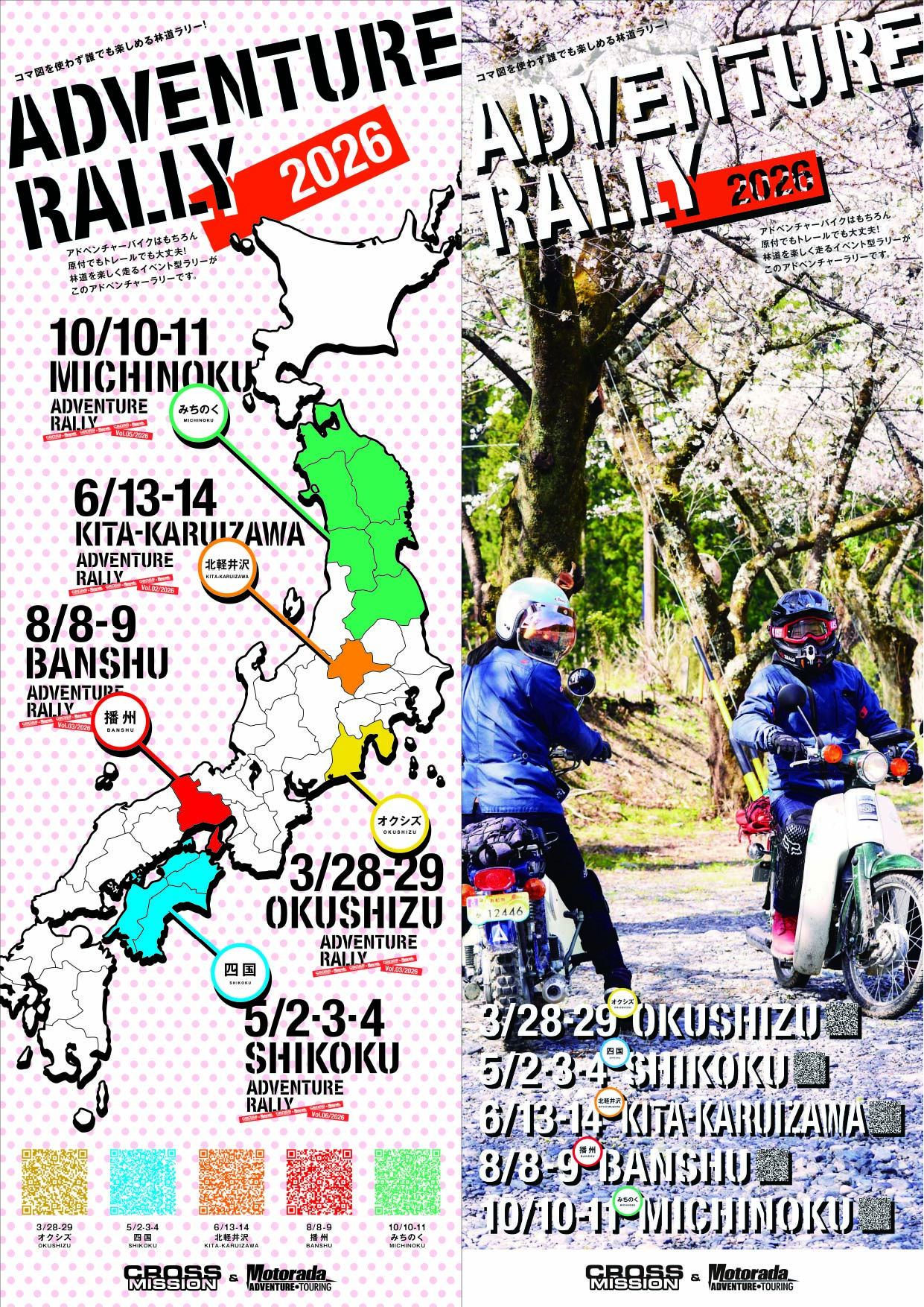 オフロードコース会場または各承認を受けた特設会場、一般公道で走行を行います。