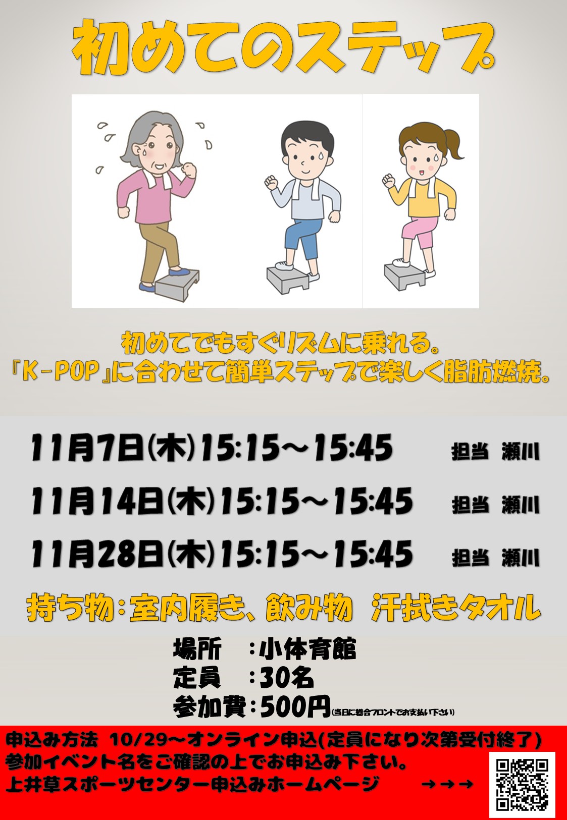 ①初心者ステップ 11/7(木) 15:15~15:45 :