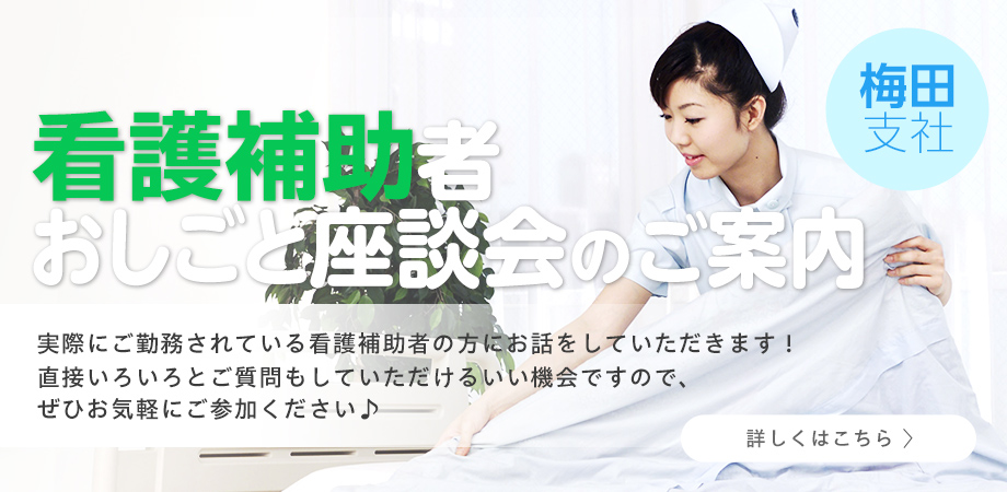 看護助手の業務内容や一日の流れなどもご説明しますので、看護助手のご経験がない方はもちろん、大阪市民病院機構の実際の様子もお聞きいただけますので、看護助手のご経験がある方にもオススメの座談会です♪