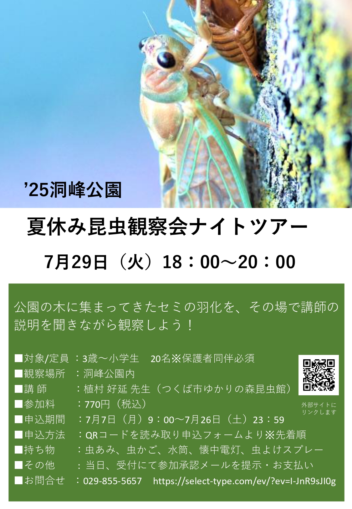 ◇持参:虫あみ、虫かご、水筒、懐中電灯、虫よけスプレー