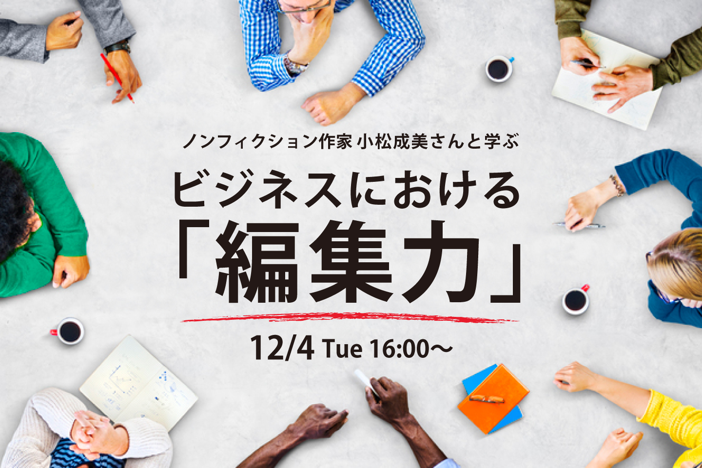 相手を惹き出す「聞く力」と、豊かに表現していく「編集力」を併せ持つ小松さんを囲み、ビジネスにおける「編集力」についてのセッションを楽しみます。
