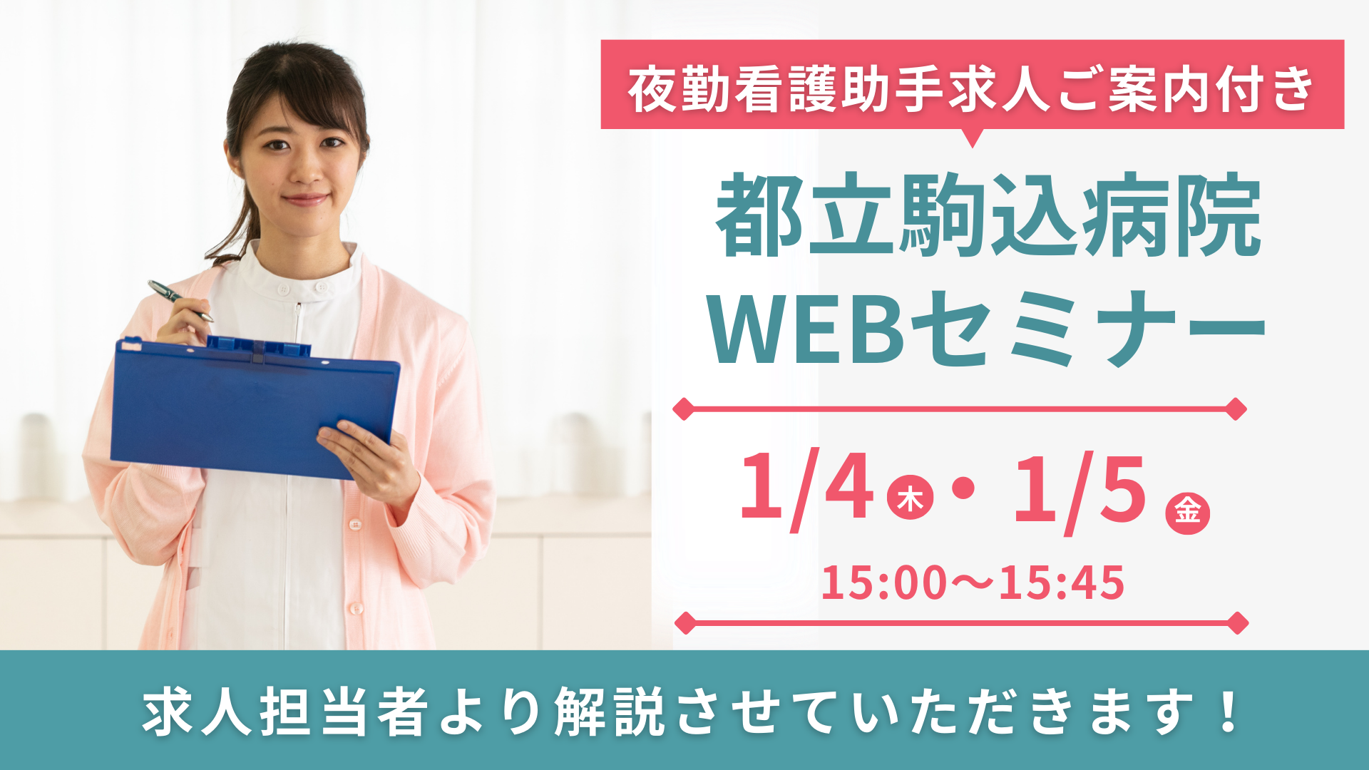 現在、都立駒込病院にて急募の看護助手求人がございますので、こちらのお仕事について、WEBセミナーを開催いたします!