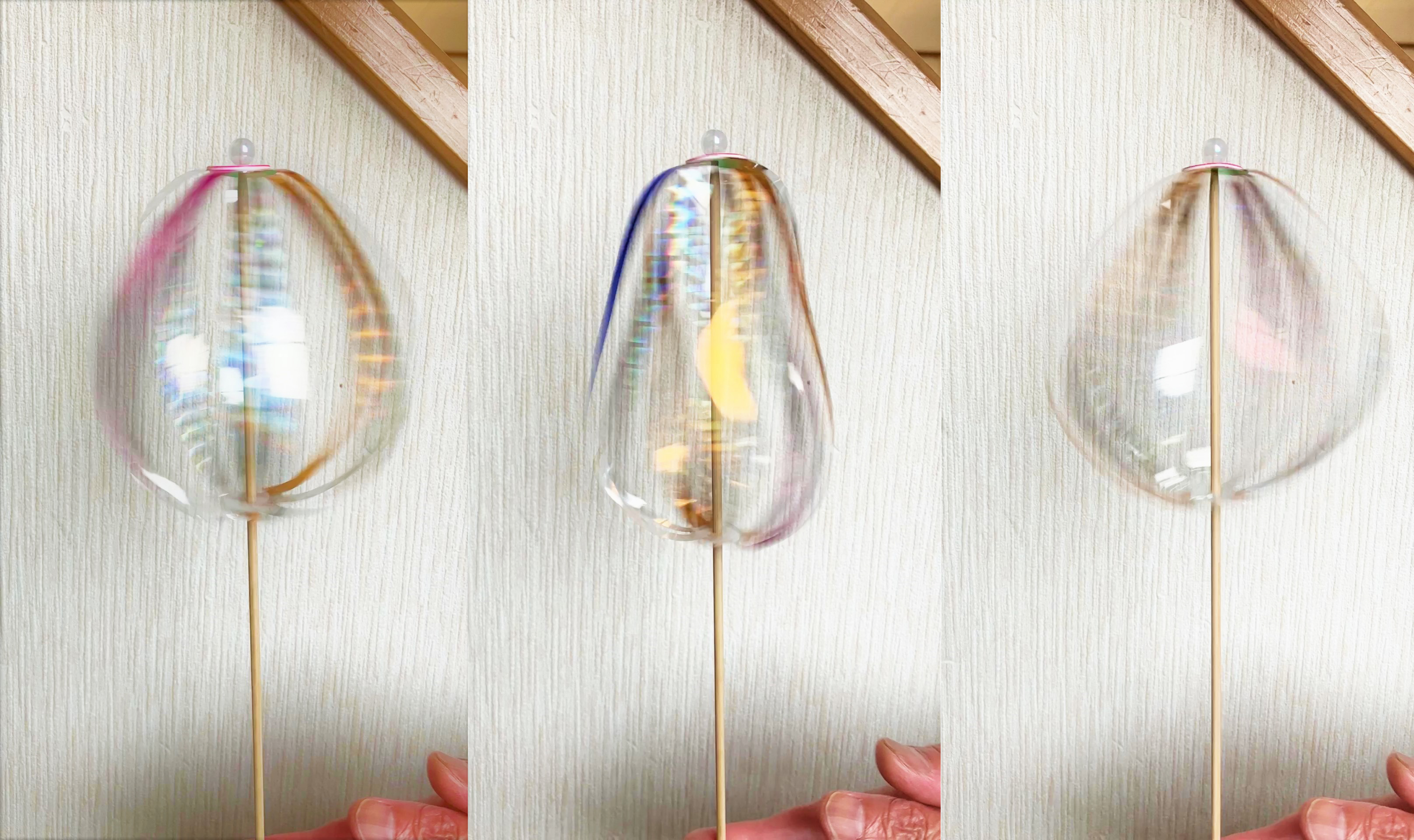 やさしーく回すと、しゃぼん玉みたいにポヨンポヨンに。