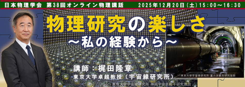 オンライン物理講話は、物理学を愛好される方々に向けて、第一線で活躍する物理学者が「最先端のホットな話題について語る」企画です。TVやオンライン動画などにある多くの一般向けの紹介より、もう少し深い理解を得ることを目指しています。皆様に長年ご愛顧いただいていた「科学セミナー」の後継事業でもあります。物理学会会員・会友の方々にとっては、年次大会総合講演以外の貴重な機会となることでしょう。
