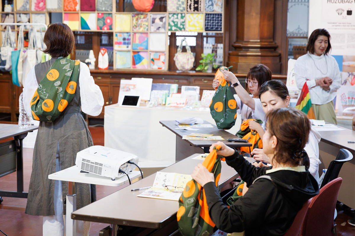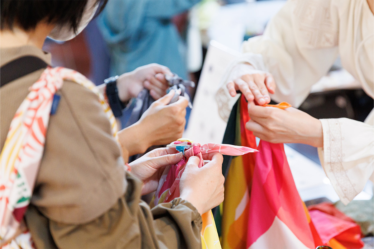 会期中、ふろしきの包み方ワークショップ(約45分)を実施します。