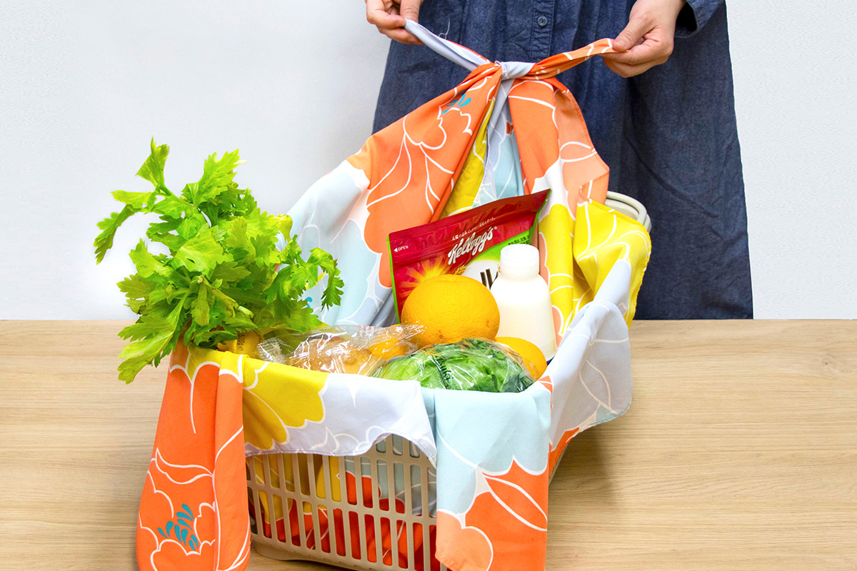 たった1枚のふろしきが、目的に応じて結ぶことでいろんな用途で使えます。