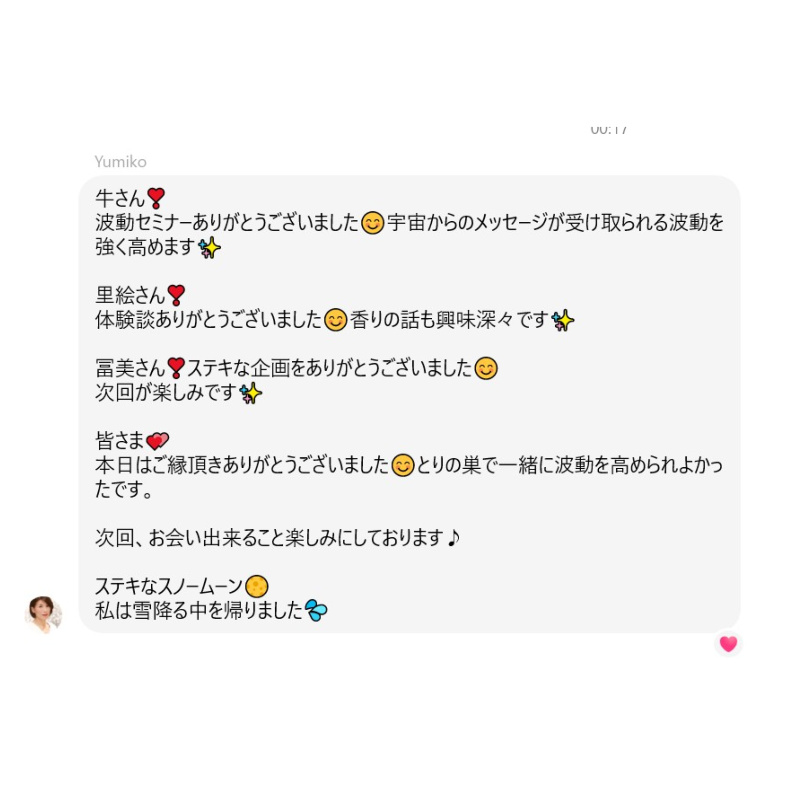 由佳さんは2022年2月16日に徳島県三好市で開催された波動セミナーに、縁あって単独で参加してくれた方です。そして僕のセミナーを熱心に聞いて貰い、高知でもぜひ波動セミナーをして欲しいとのラブコールを受けて、今回のセミナーが開催出来る運びとなりました。